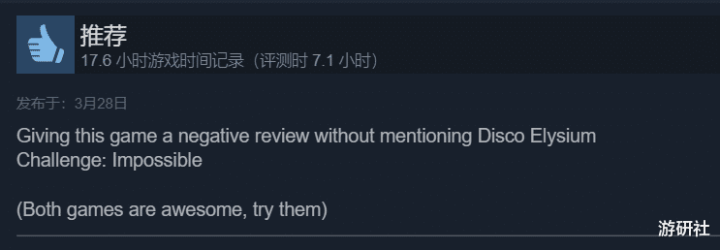 “挑战在给游戏差评的同期不提到《极乐迪斯科》:不成能”