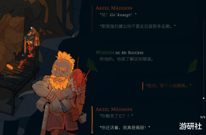 《玄机》中也存在肖似的短线蓄意。在探索地下城时,我曾因为阶梯偏差,“提前”触发了一个火球安装;而在后续与Akzel的对话中,他会领导玩家“不要走后头的走廊”。由于我还是资格过该事件,游戏因此触发了一句特等的响应:“你还活着,我真佩服”。