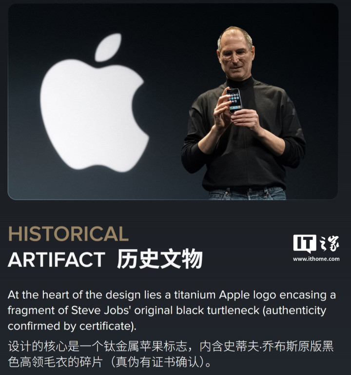 而本次联想的中枢亮点,凤凰彩票首页在于钛金属苹果LOGO下方,用心密封了乔布斯标识性玄色高领毛衣的实在碎屑。每台手机均附带官方认证文凭,确保布料起首的实在性。