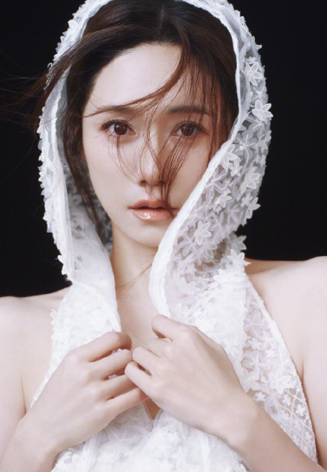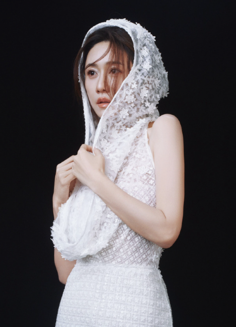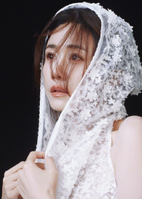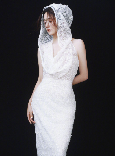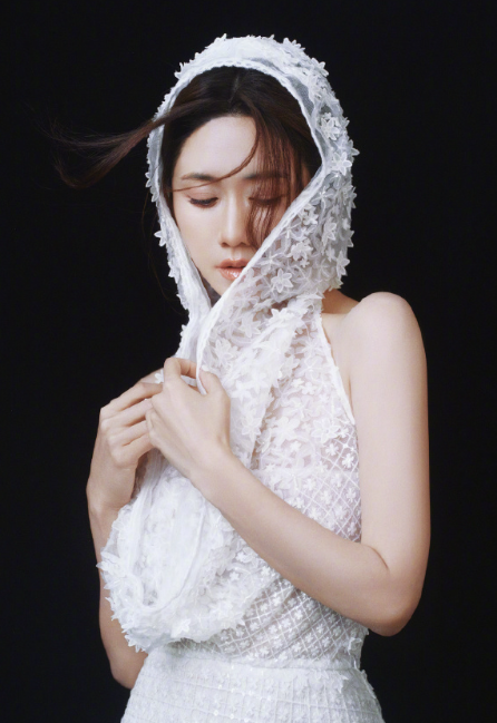 刘芸的皎白破灭感穿搭!白蕾丝头纱也太仙了