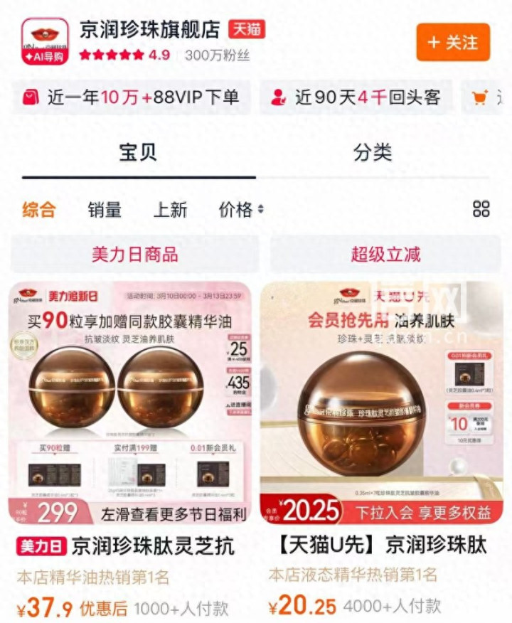 天猫“京润珍珠旗舰店”页面(开首:收罗截图)